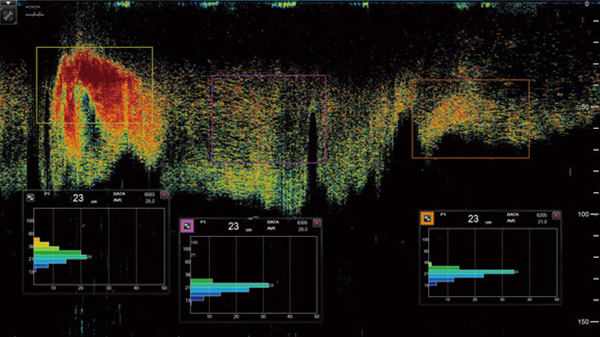 FCV-2100-MARK-2可同时在3个位置测量并显示鱼体大小,对比并分析鱼体大小和鱼群构成,从而让钓鱼变得更为高效,诸如专注于特定大小的鱼群。