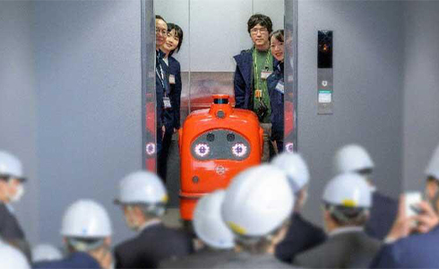 長幡氏:たとえば私の部署では、「ロボットとヒトのエレベーター同乗連携等に関する実証実験」を行いました。ビル内で荷物を運ぶなどの役割を担うサービスロボットがWi-Fiを通じて制御され、エレベーターを使って別の階へと移動して荷物を届けるのです。エレベーター内は通常、電波が届きにくいのですが、「ウェーブガイドLANシステム」を活用することでエレベーター内にWi-Fi環境を構築できるので、エレベーター内でもロボットが制御されます。このためロボットはヒトと安全にエレベーターに同乗することができます。