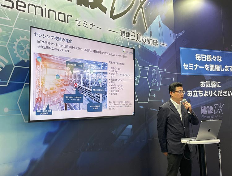今回は、作業員や重機と言ったモノの位置情報データがテーマです。将来、建設業を含む全てのサービス事業において、位置情報データは欠かせないものになってきます。セミナーでは、一般社団法人LBMA Japan 代表理事 川島 邦之氏が「位置情報データ利活用で事業を可視化する」をテーマにセンシング技術の進化やデータ活用による業務の効率化、ロケーションプライバシー推進活動について紹介しました。