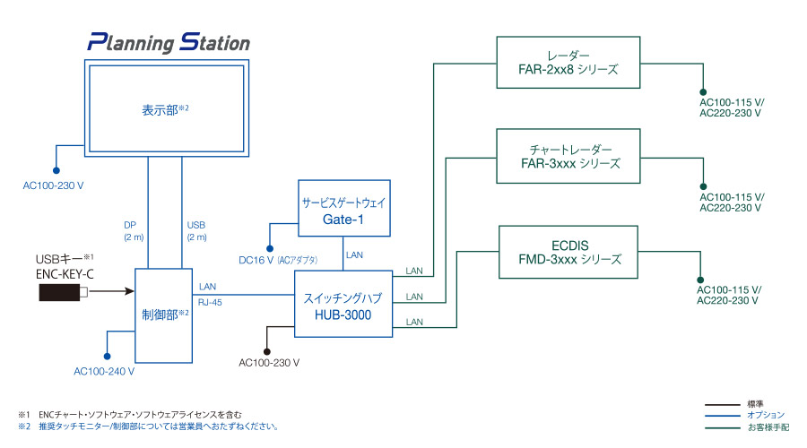 ※ECDIS、レーダー、AIS受信機の同一ネットワーク接続が必要。