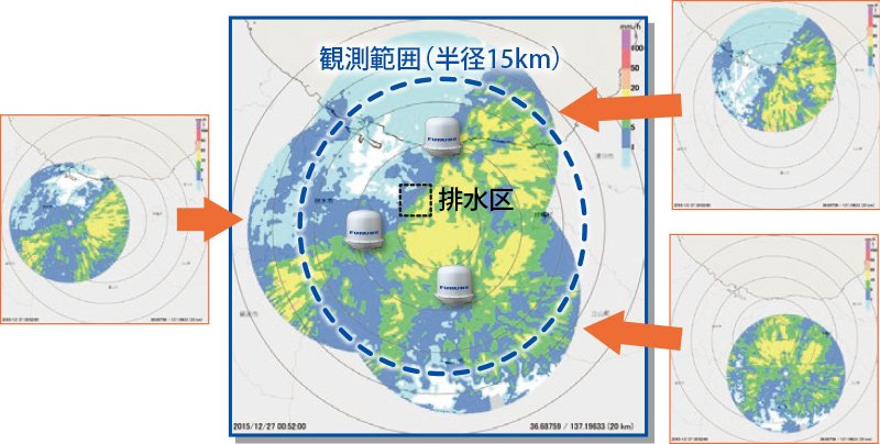 3基からなるマルチレーダーシステムを活用することで、積乱雲の早期検知など、より高度な観測を可能にします。
