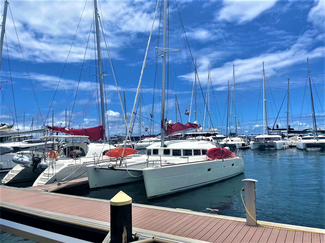 マリーナには多くのクルージングカタマランが並びます。タヒチ島の他にも自然豊かな島がポリネシアにはあり、みんな時間をかけてゆっくり回るそうです。いいなぁ。