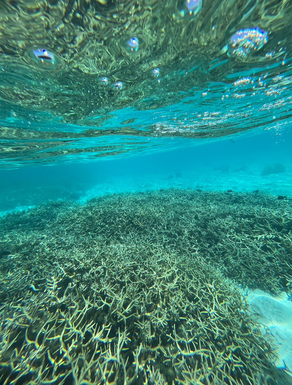 ビーチから20mほどの距離で珊瑚が広がります。水の透明度も凄いです。