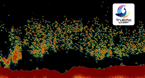 TruEcho CHIRP™は高分解能の威力を発揮するフルノ独自の魚探技術です。これまで表示できなかった微弱反応の魚も探知し、プランクトンに埋もれることなくエコーを表示します。