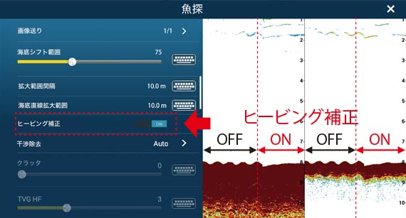 | 表示モード | 1周波、2周波、海底追尾拡大、海底拡大、マーカー拡大、Aスコープ | 断面映像モード、サイドスキャンモード、3D履歴モード、マルチ魚探モード(トリプル/シングルビーム) | - |
